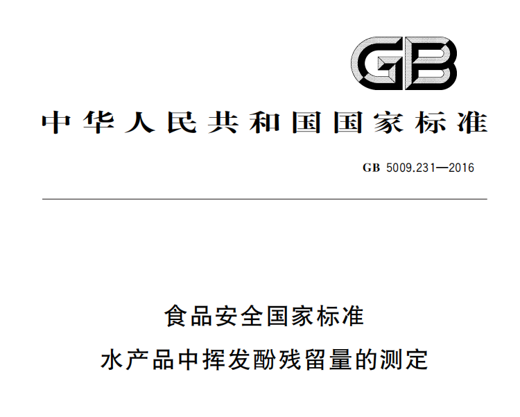 GB 5009231-2016 食品安全國家標準 水產(chǎn)品中揮發(fā)酚殘留量的測定 更新日期:2023-01-03 下載包(1)