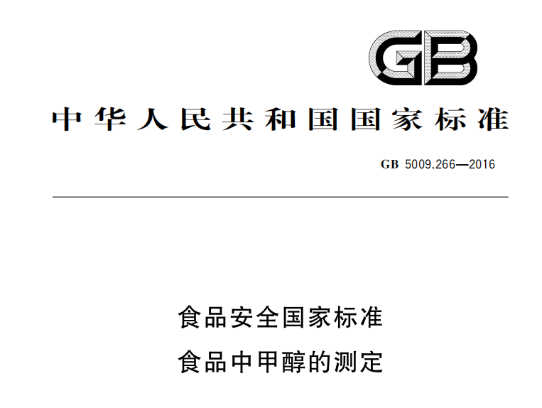 GB 5009266-2016 食品安全國家標準 食品中甲醇的測定 更新日期:2023-01-03 下載包(1)