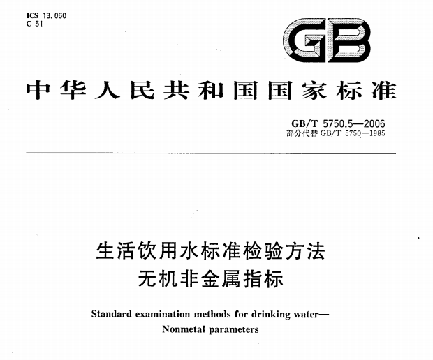 GBT 57505-2006 生活飲用水標(biāo)準(zhǔn)檢驗(yàn)方法 無(wú)機(jī)非金屬指標(biāo) GBT 57505-2006 生活飲用水標(biāo)準(zhǔn)檢驗(yàn)方法 無(wú)機(jī)非金屬指標(biāo) 更新日期:2023-01-03 下載包(1)
