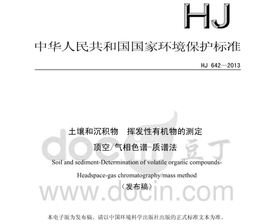 HJ642-2013土壤和沉積物揮發(fā)性有機(jī)物的測定頂空氣相色譜—質(zhì)譜法 適用范圍試驗(yàn)中所使用的內(nèi)標(biāo)、替代物和標(biāo)準(zhǔn)溶液為易揮發(fā)的有毒化合物,其溶液配制過程應(yīng)在通風(fēng)廚中進(jìn)行操作... 更新日期:2020-05-09 下載包(1)